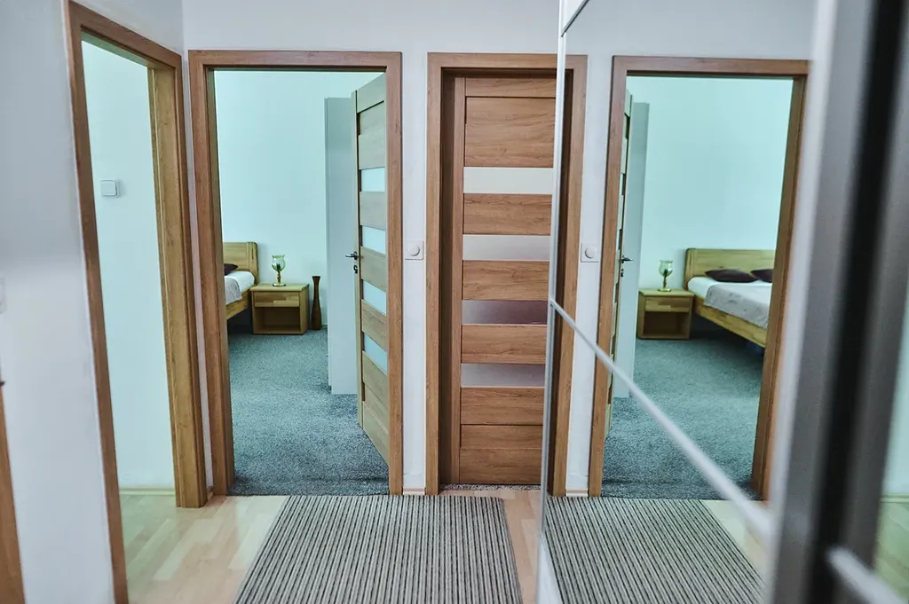 Byt má neprůchozí pokoje a prošel rekonstrukcí: bytové jádro včetně zařizovacích předmětů, podlahy, interiérové dveře včetně zárubní, vstupní dveře, rozvody elektřiny a vody a kuchyňská linka včetně vestavných spotřebičů. V případě zájmu je možné ponechat část vybavení (dle dohody). K bytu náleží sklepní kóje a k dispozici jsou také společné úložné prostory.