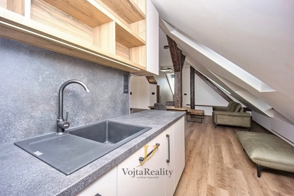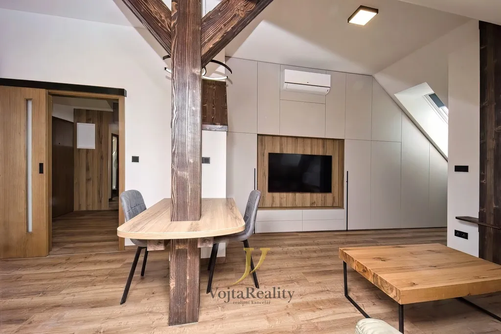 Přicházíme s nabídkou pronájmu luxusně vybaveného střešního bytu o dispozici 1+kk a výměře 55 m², který se nachází na ulici Blanická v Olomouci, v blízkosti hlavního vlakového nádraží.