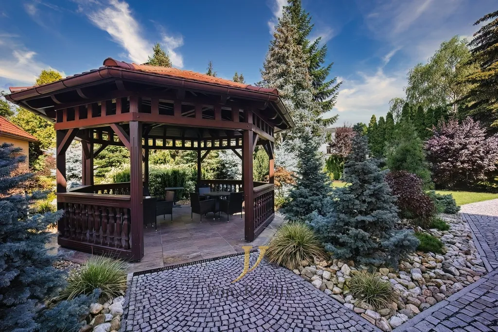 Byt je situován v krásné vile s rozlehlým, uzavřeným pozemkem, který poskytuje maximální soukromí a klid. Nájemníkům je k dispozici možnost využití nadstandardně řešeného venkovního altánu, zahrady určené k pasivnímu odpočinku a netradiční venkovní kuchyně s vlastním sociálním zázemím. K bytu lze po dohodě pronajmout také garáž v zabezpečeném objektu přímo na pozemku. Celý areál i samotný dům jsou chráněny kamerovým a elektronickým zabezpečovacím systémem s videotelefonem. Internetové připojení je řešeno optickým kabelem.