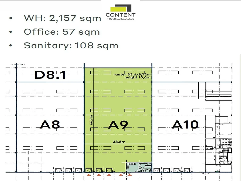 - vestavěné kanceláře 57 m² + zázemí 108 m², další dle požadavku
