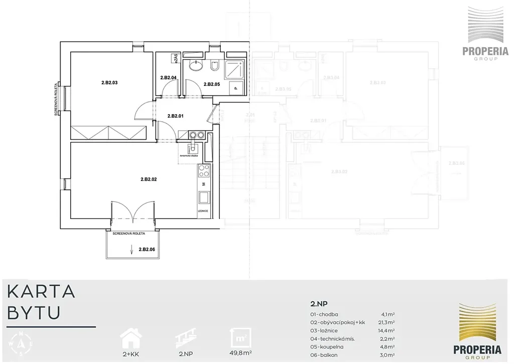 Nabízíme vám apartmán ve 2.NP o dispozici 2+KK a CP 46,8 m² s balkonem CP 3,0 m².