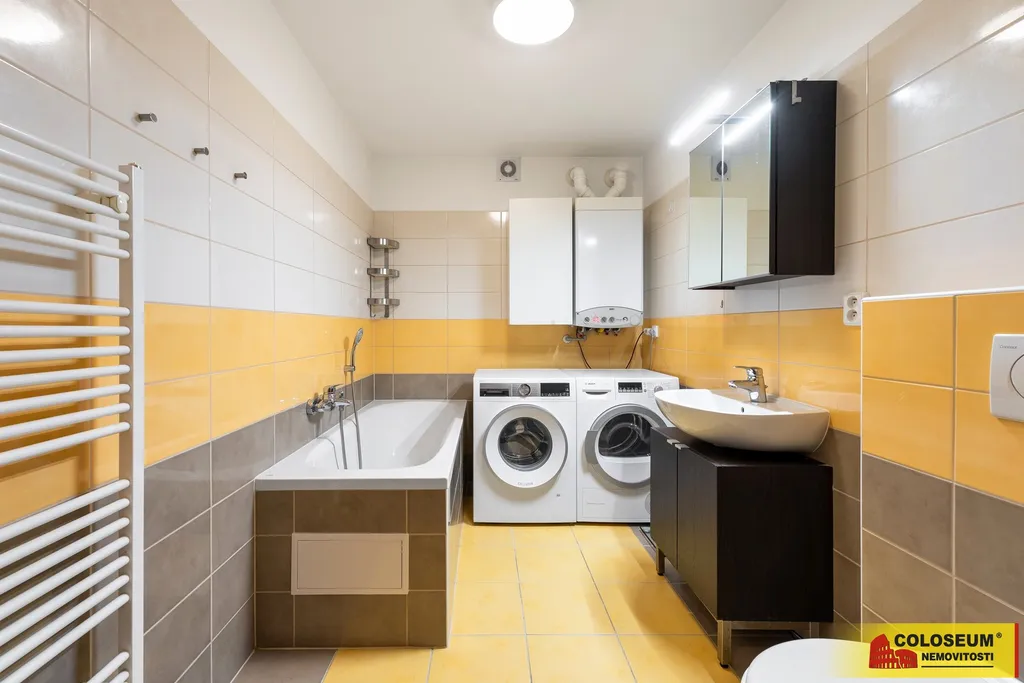 Byt je vybaven klimatizací, venkovními žaluziemi a vysouvací markýzou na balkonu, které zajišťují maximální komfort po celý rok. Vlastní plynový kotel s termostatem slouží k ohřevu teplé vody a vytápění pomocí radiátorů, což umožňuje plnou kontrolu nad provozními náklady.