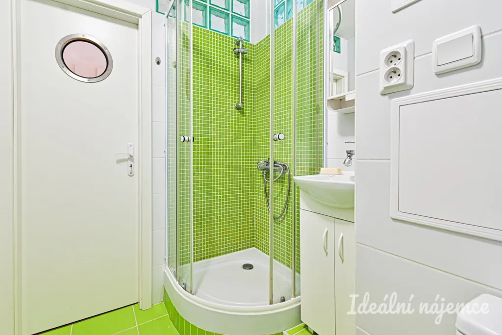 Interiér je ve velmi dobrém stavu a připravený k okamžitému nastěhování – ideální volba pro jednotlivce nebo pár. Dispozice 1+1 nabízí prakticky oddělenou kuchyň s jídelnou a obytný pokoj, takže máte dostatek soukromí i prostoru pro práci z domova. Kuchyně je vybavena spotřebiči jako sporák s troubou, lednice, pračka a digestoř. Obytná místnost je zařízena manželskou postelí, skříní, gaučem a konferenčním stolkem. Koupelna disponuje sprchovým koutem, umyvadlem se skříňkou a toaletou.