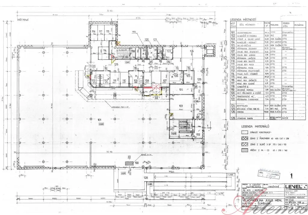 Vybudování a uvedení objektu do provozu proběhlo v roce 1999 na základě požadavků sítě supermarketů Julius Meinl, vypracovaném ing. arch. J. Hromádkou. Plocha prvního nadzemního podlaží - prodejní plochy, činí 1587m2 a disponuje čtyřmi zabudovanými chladícími/mrazícími boxy značky Hauser, zázemím pro zaměstnance a sociálním zařízením. Suterén s nákladovou rampou, sloužící coby skladové zázemí prodejny, je opatřen výtahem (nosnost 630kg.), strojovnou vzduchotechniky, chlazení a výměníkovou stanicí, neméně sociálním zařízením.