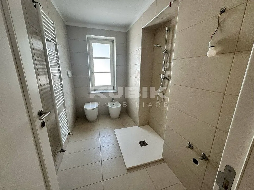 V Camporossu, v nedávno dokončeném bytovém domě s výtahem, se nachází prostorný a útulný byt rozložený do dvou podlaží.