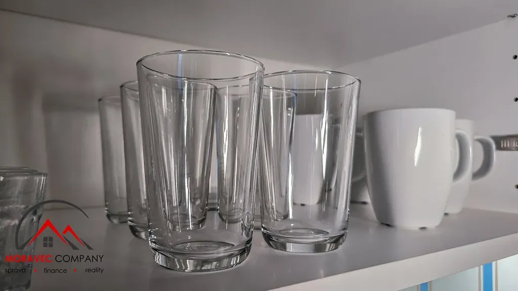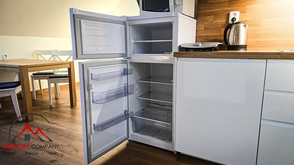 Jednotka je plně vybavena – nechybí nábytek, spotřebiče i nádobí. Stačí si jen přinést osobní věci a můžete bydlet!