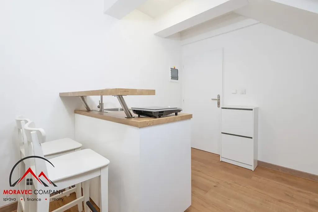 Jednotka je plně vybavena – nechybí nábytek, spotřebiče i nádobí. Stačí si jen přinést osobní věci a můžete bydlet!