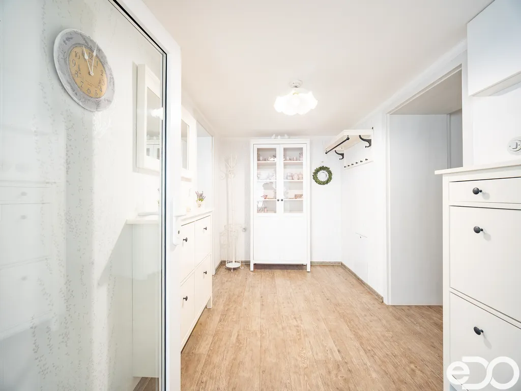 Vchod do domu je skrz garáž a dále terasou až do velké předsíně ve verandě. To oceníte zejména v deštivých a zimních dnech. Z předsíně mohu pokračovat do suterénu s dílnou a špajzem - je zde také přípojka vody a změkčovač vody. To je obrovský benefit pro celou domácnost a to nejen z pohledu údržby a čištění skel ve sprchovém koutě, ale také prodloužení životnosti spotřebičů jako je pračka, kávovar, myčka atd.