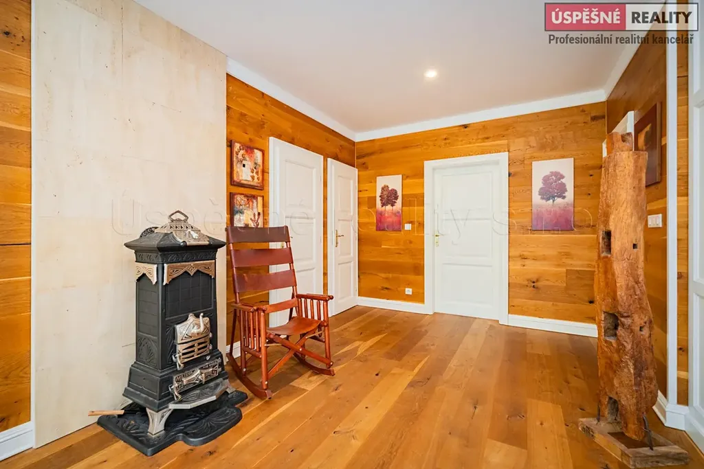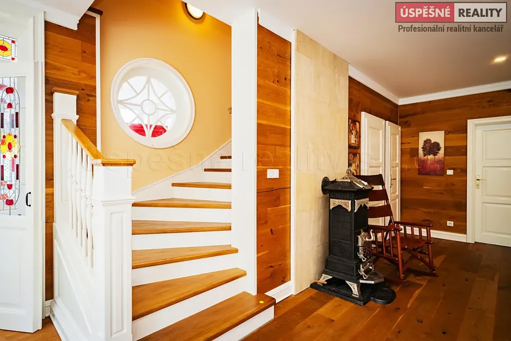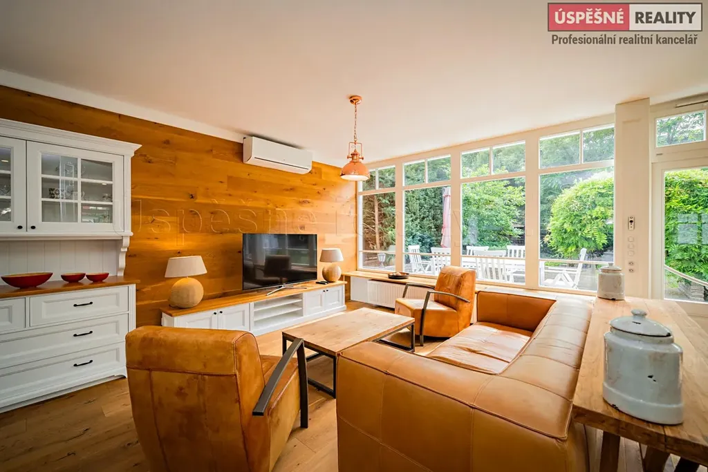 V exkluzivním zastoupení majitele Vám zprostředkujeme koupi unikátní vily o dispozici 4+kk s krytým stáním pro dva vozy, zahradním domkem a venkovním bazénem se slanou vodou. Částečně podsklepená vila s terasou, stojí spolu s rozsáhlou, udržovanou zahradou v městské části Prahy 5 Slivenec, ul. Opálová na pozemku o celkové rozloze 786 m2. Nemovitost prošla kompletní, velmi citlivou a nákladnou rekonstrukcí a výsledkem je architektonický skvost, který svým současným stavem a atraktivním umístěním v klidné lokalitě s okolní zástavbou rodinných domů, skýtá možnost komfortního a klidného bydlení zejména pro rodinu. Důraz byl kladen na prvotřídní užité materiály, jako dřevo, keramika, vitráže a jedinečné prvky zapadající do architektonického stylu první republiky.