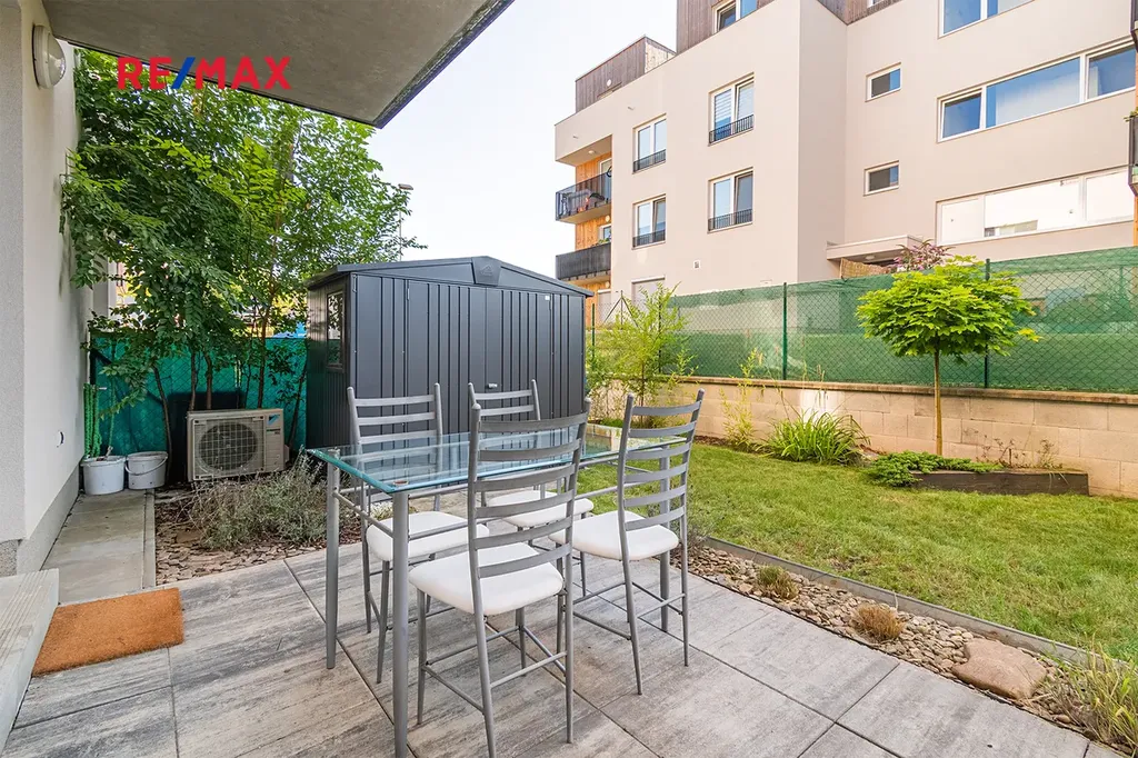Byt má podlahovou plochu 40 m2 a zahradu o velikosti 64 m2. Nabízí nadstandardní vybavenou kuchyň s myčkou i pračkou. Spací prostor v hlavní místnosti s úložným prostorem, pracovnu, koupelnu se sprchovým koutem a toaletou. Byt je vybaven klimatizací a chytrou domácností. Součástí pronájmu je veškeré vybavení a nábytek, včetně pračky a venkovního posezení, postele a spoustu dalšího..