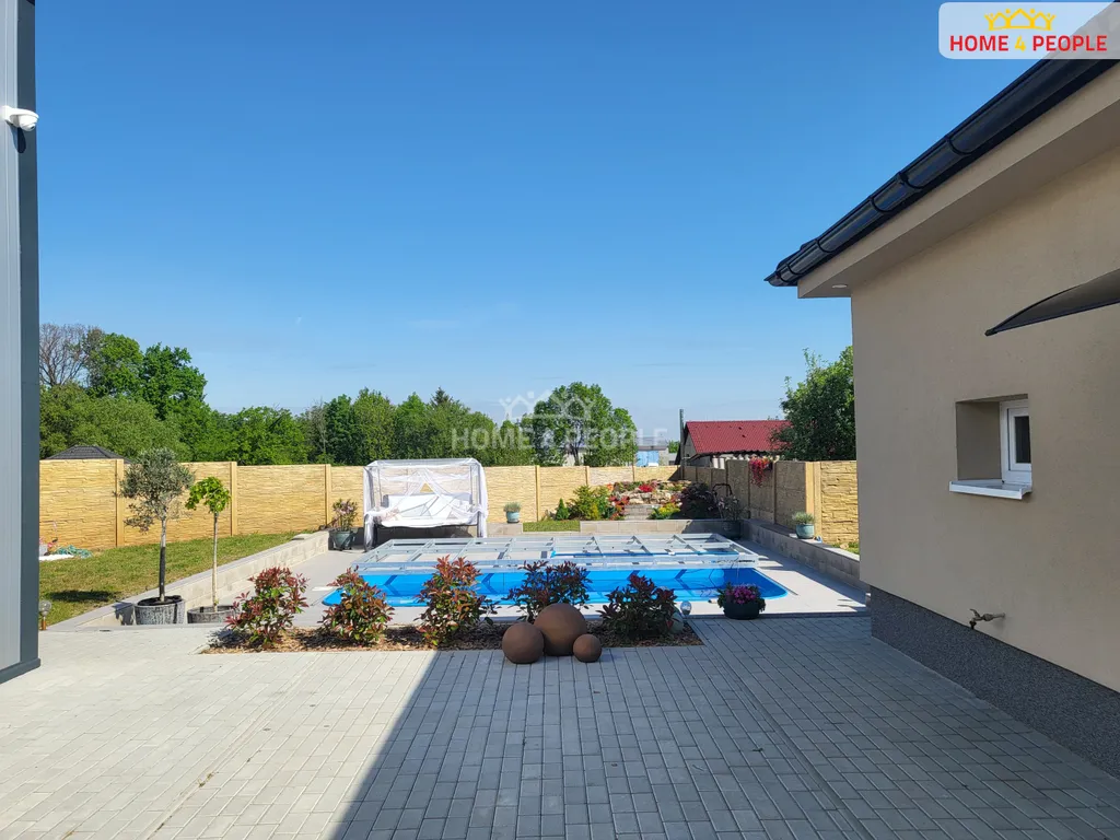 Prostorná a bezbariérová stavba v dispozici 4+kk a výměře 166 m² vyniká promyšleným záměrem, kvalitními materiály i zpracováním a využitím chytrých technologií, které zajišťují pohodlný a úsporný provoz domácnosti. Vzdušné a světlé interiéry s dostatkem místa zahrnují hlavní pokoj s kuchyní a komorou, 2 pokoje, prosklenou zimní zahradu, koupelnu, šatnu, technickou místnost. Je zde i varianta přístavby pokoje. Topení podlahové, v každém pokoji i klimatizace.