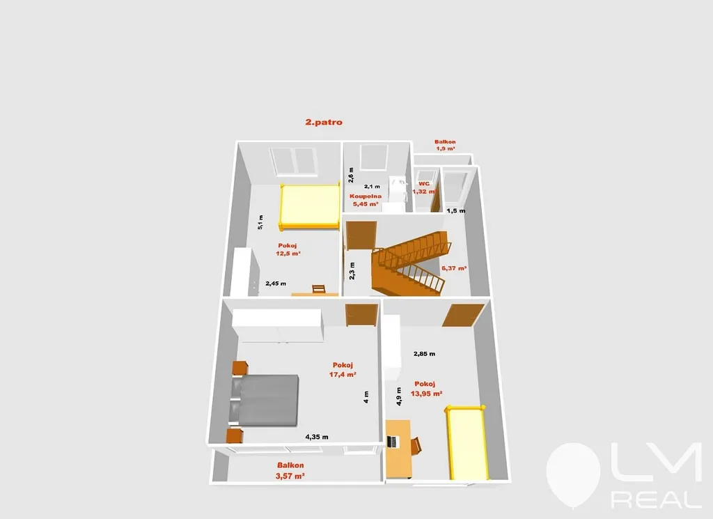 2. NP kuchyně se spíží a jídelním koutem, obývací pokoj, dvě ložnice, balkon,