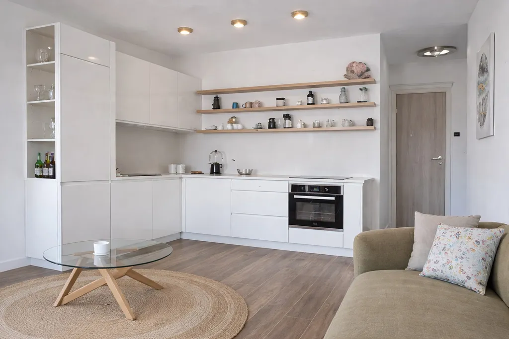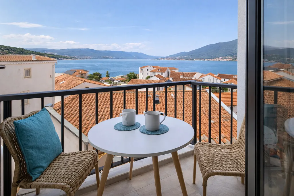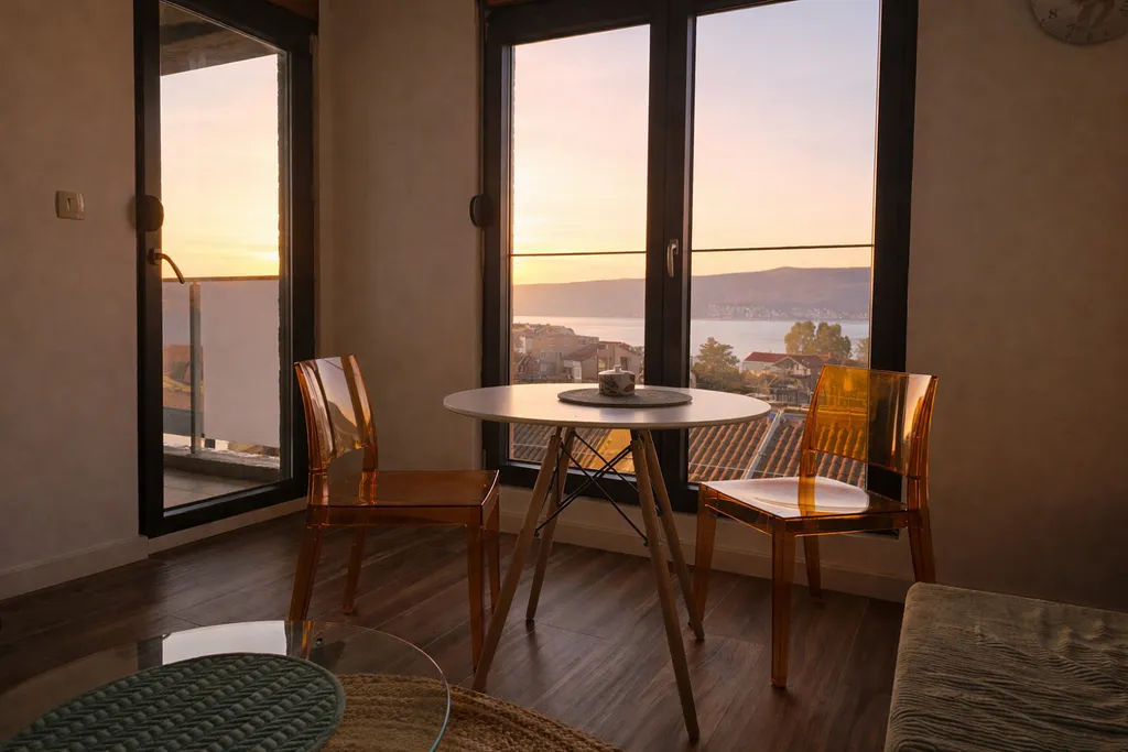 Apartmán je umístěn ve 3. patře moderní budovy a nabízí úchvatný panoramatický výhled na moře a celou Bokokotorskou zátoku. Součástí je soukromá garáž i vlastní parkovací stání, což zajišťuje maximální komfort a bezpečí.