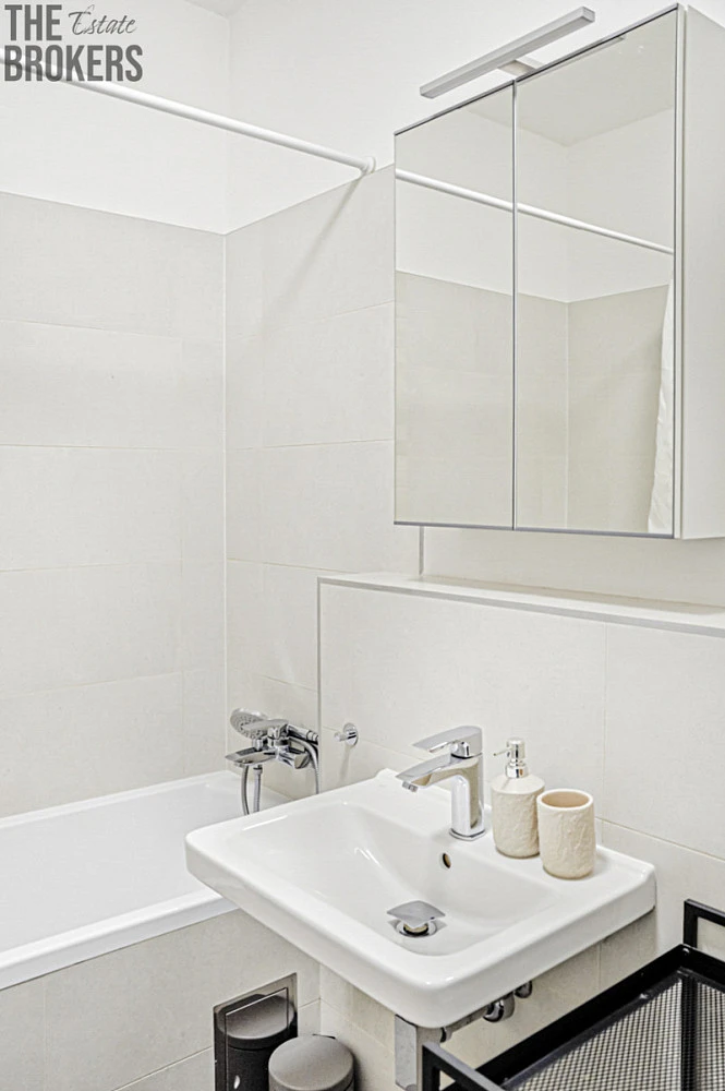 Byt je částečně vybavený a připravený k nastěhování. Součástí je moderní kuchyňská linka s vestavěnými spotřebiči: lednice, mrazák, varná deska, trouba a myčka. V koupelně se nachází pračka. K dispozici je také rozkládací pohovka, dvě prostorné šatní skříně a postel s kvalitními matracemi.