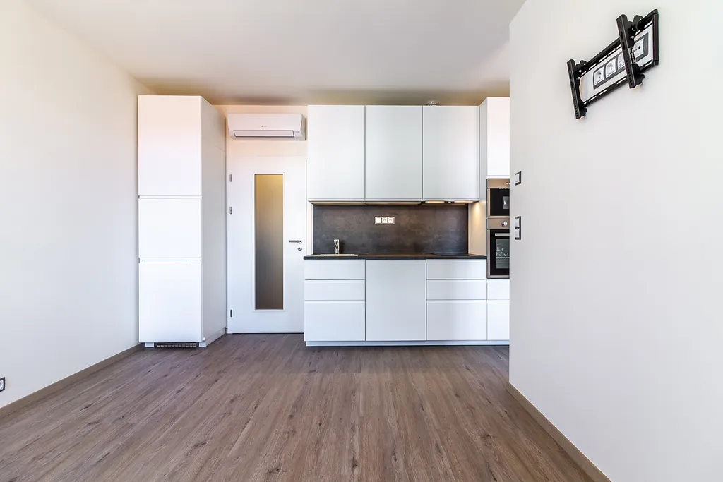 Chcete bydlet moderně a přímo v centru Prahy? Nabízíme k pronájmu světlý byt o dispozici 1+kk a velikosti 34,1 m². Byt je situovaný v 5. NP zrekonstruovaného památkově chráněného domu na adrese Lípová 474, Praha 2. Jednotka je velmi vkusně a prakticky dispozičně řešena. Spací a obytná část je oddělena příčkou. To poskytuje pocit většího prostoru i dostatek soukromí. Byt disponuje poměrně velkou kuchyňskou linkou plně vybavenou spotřebiči, přičemž její část je chytře řešena a slouží jako úložné prostory pro oblečení. Součástí vybavení je také kombinovaná pračka se sušičkou značky Bosch.Pro maximální komfort je byt klimatizován. Nová dřevěná, odhlučněná okna zajišťují dostatek klidu i světla po celý den.