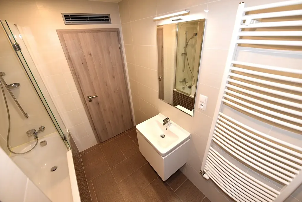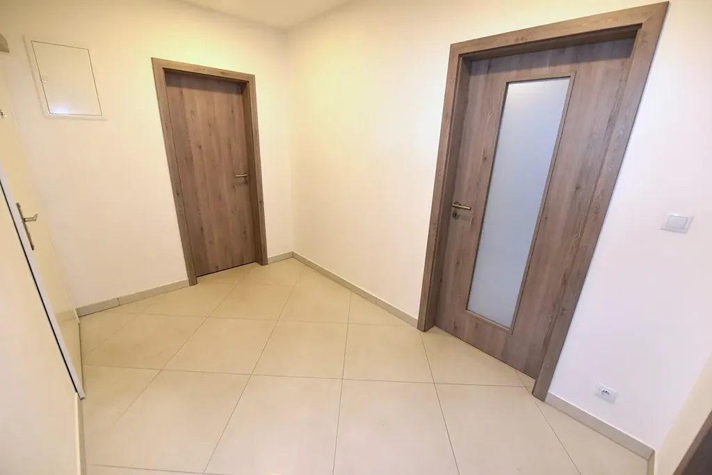 Prodej krásného a prostorného bytu 2+kk s terasou, předzahrádkou, velkým zděným sklepem a garážovým stáním, v 1. patře cihlové novostavby s výtahem v ulici Petrohradská, Praha 10 – Vršovice. Byt má celkovou podlahovou plochu 59 m2 + terasa 15,9 m2 + předzahrádka 36,1 m2 + sklep 7,1 m2 a je zařízen kuchyňskou linkou s vestavěnými spotřebiči (lednice s mrazničkou, elektrická a mikrovlnná trouba, myčka, sklokeramická varná deska, digestoř), kuchyňským ostrůvkem se židlemi a velkou skříní v ložnici. Koupelna je vybavena umyvadlem se skříňkou, zrcadlem, otopným žebříkem, vanou a prostorem pro pračku. Toaleta má samostatný vstup z koupelny. Měsíční náklady za byt činí 5.508,-Kč + spotřeba elektřiny. K bytu náleží velký zděný sklep o ploše 7,1 m2 a garážové stání v podzemním podlaží. Přímo před domem se nachází autobusová zastávka ve směru metro Kačerov (9 min.), Budějovická (10 min.). Ve vzdálenosti 5 min. chůze je tramvajová zastávka ve směru Strašnická (8 min.), I. P. Pavlova (9 min.) Pražského povstání (10 min.), Karlovo nám. (13 min.), Anděl (14 min.). Vlakové nádraží Praha-Vršovice je vzdáleno 6 min. chůze od domu. V nejbližším okolí jsou mateřské a základní školy, gymnázium, dětská hřiště, kavárny, čajovna, restaurace, lékárna, poliklinika, pošta, zimní stadion, tenis, supermarket Lidl, Havlíčkovy sady. Pro domluvení prohlídky kontaktujte makléřku.