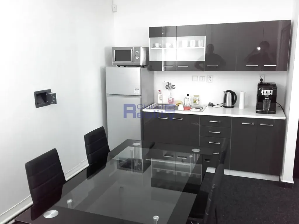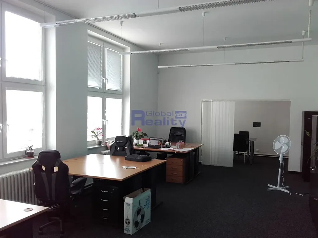 Budova v níž se kanceláře nacházejí prošla také celkovou rekonstrukcí a zateplením (PENB - "A"). Prostory se sestávají z hlavní velké kanceláře o výměře cca 45 m2, skladu či archivu o výměře cca 10 m2, sociálního zařízení vč. sprchového koutu, úklidové místnosti a kuchyňky o výměře cca 10 m2. V prostorách jsou plastová okna, zátěžový koberec, osvětlení, klimatizace a trezor. Prostory sousedí s chodbou o výměře cca 20 m2, o které lze prostory rozšířit a použít jako další sklad či archiv.