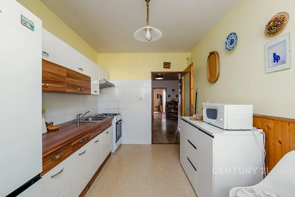 Byt se nachází ve druhém patře čtyřpatrového cihlového domu bez výtahu. Jedná se o klidné místo pro rodinné bydlení. Velkou výhodou je oplocený pozemek, možnost parkování před garáží a prostorná garáž.