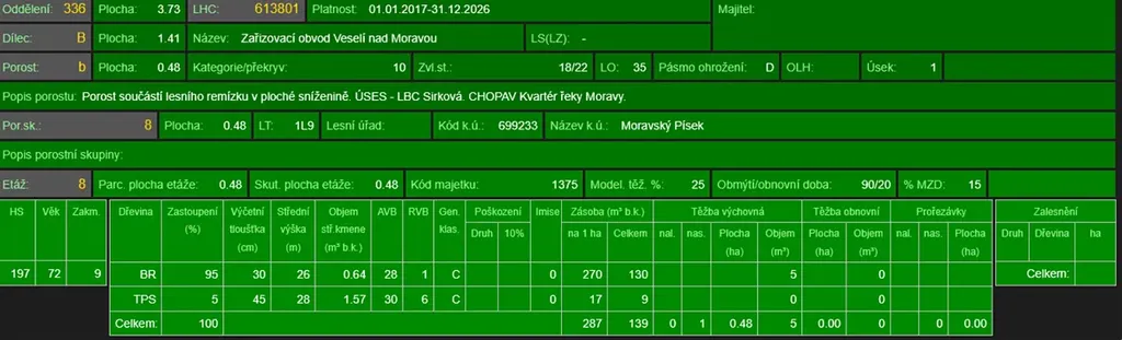 - p.č. 3804 vedená jako lesní pozemek o celkové výměře 4 838 m2 (stáří lesa 81 let - zastoupení dřevin bříza, topol).