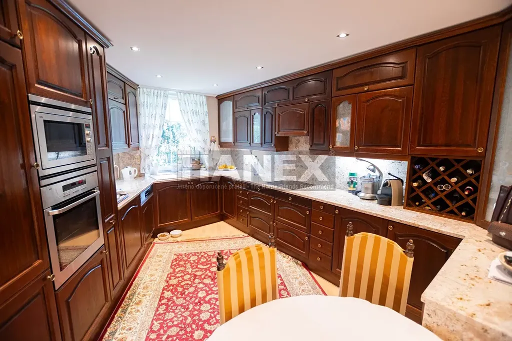 Vybavení domu: alarm, solární panely, funkční krb, venkovní rolety, sluneční markýzy, vestavěné kuchyňské spotřebiče, zahradní nábytek a technika, pojezdová brána a garážová vrata na dálkové ovládání, zámková příjezdová cesta, automatické zavlažování, studna na pozemku.