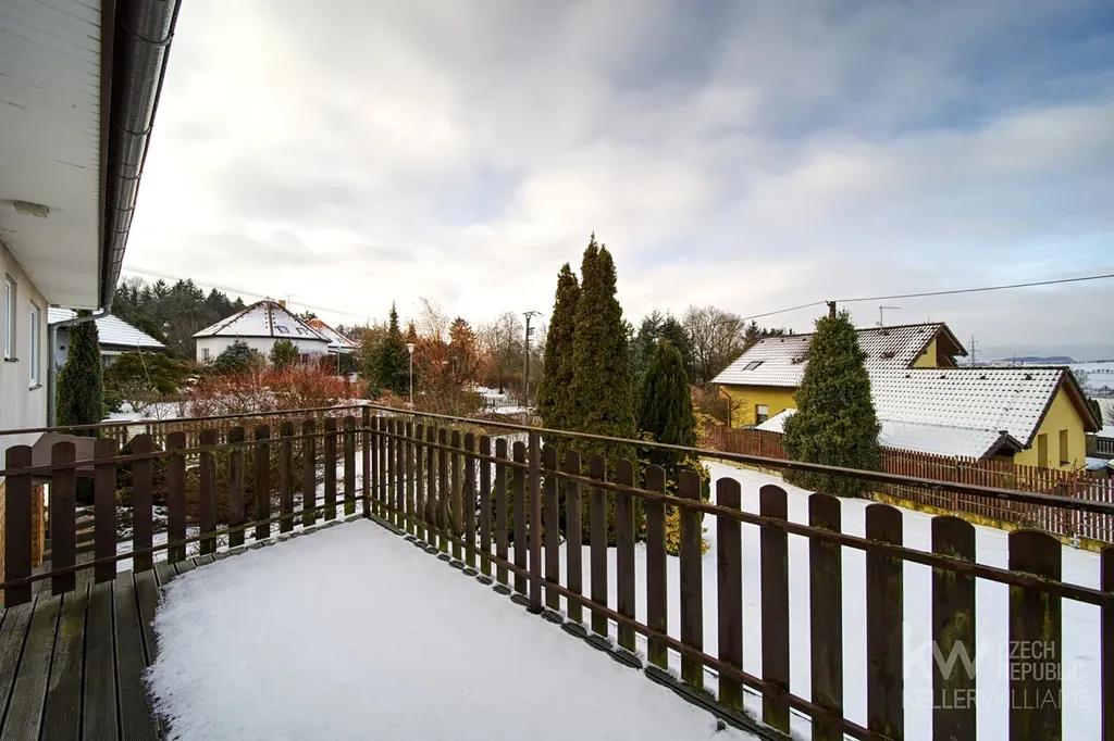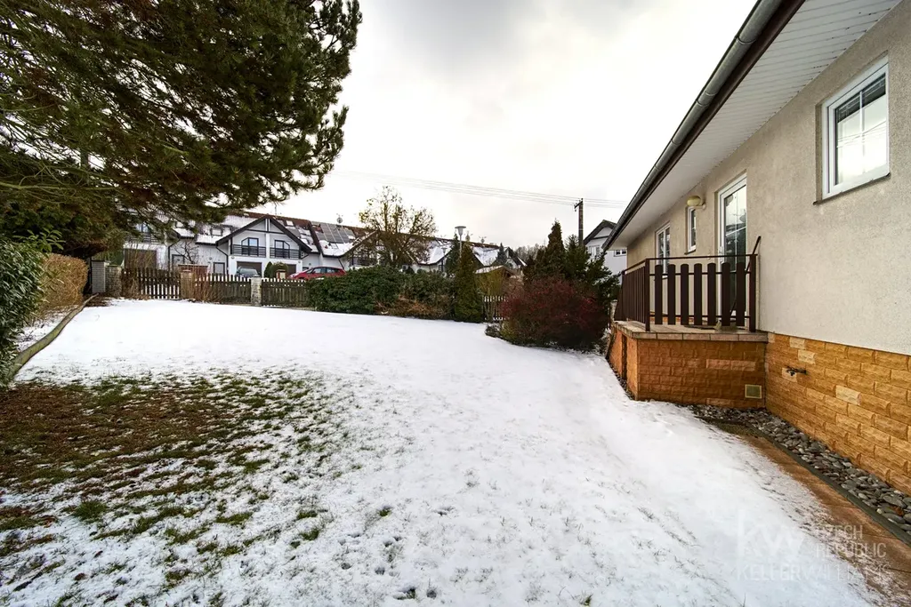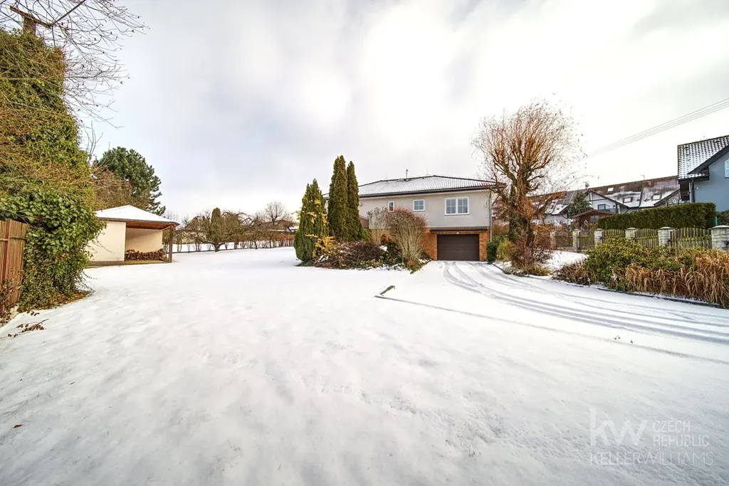 Dům má dvě nadzemní podlaží, neobytnou půdu, zahradu o velikosti 860m2, zděnou pergolu s krbem, terasu a prostornou garáž pro dvě auta.