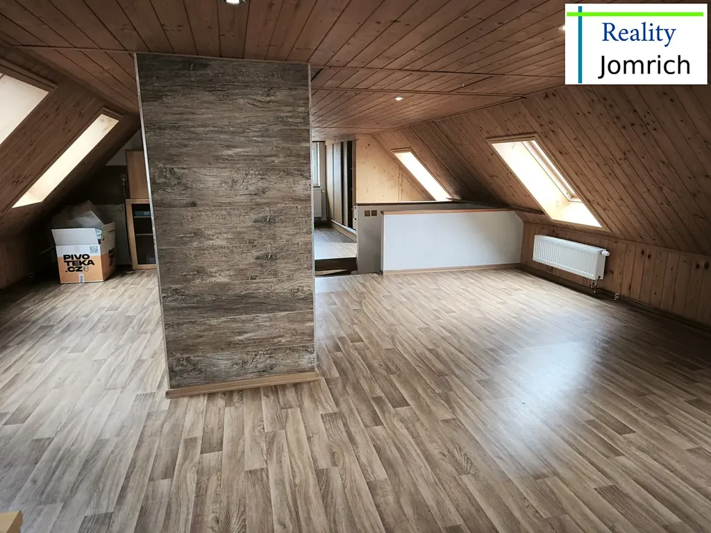 2.patro – podkroví, ateliérový byt 3+kuchyňský kout, ca 70 m2 s výškou do plochého stropu 185 cm.