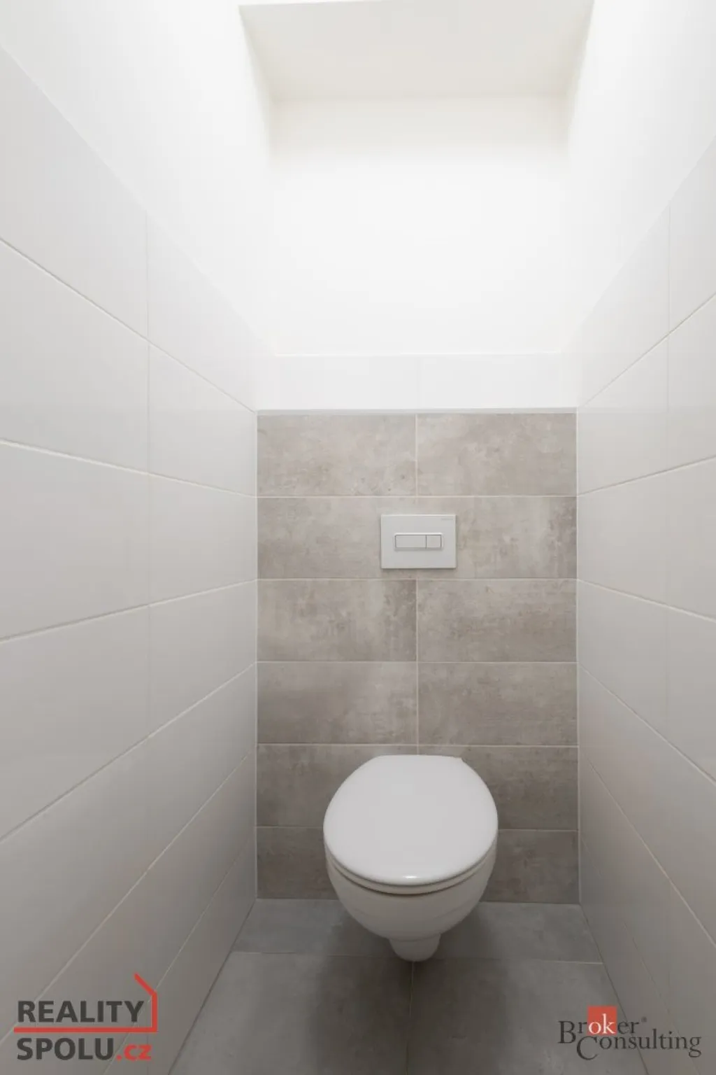 Moderní vybavení: Kuchyňská linka je osazena spotřebiči (indukce, el. trouba, myčka, digestoř). Samostatné WC a moderní koupelna se sprchovým koutem jsou samozřejmostí.