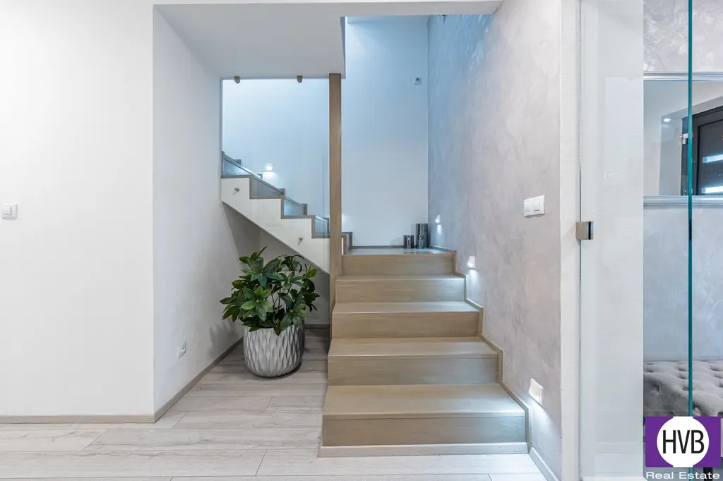 Nabízíme k prodeji výjimečný RD o dispozici 6+kk na pozemku 753 m2, v ulici Na Jihru v Písku. Dům kolaudovaný v roce 2020 je navržen v jednotném designu, vyniká promyšleným řešením úložných prostor, včetně nábytku na míru. Přízemí je navrženo s důrazem na maximální komfort. Srdcem celého domu je honosný obývací pokoj, který díky velkoformátovým oknům a přímému vstupu na terasu plynule propojuje interiér s exteriérem. Součástí tohoto prostoru je moderní, plně vybavená kuchyně s vestavěnými spotřebiči Siemens. Soukromá zóna zahrnuje ložnici s vlastní šatnou a pracovnu, které mají též vstup na terasu. Zázemí zajišťuje koupelna se sprchovým koutem a WC, technická místnost, další samostatné WC a u vstupu do domu dvě samostatné šatny. Horní patro je takové "království pro děti", tři prostorné pokoje, koupelna s vanou a WC.