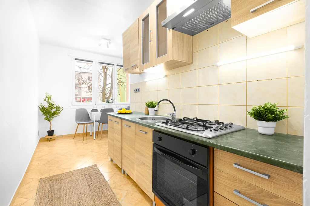 Tento byt prošel rekonstrukcí v r. 2014, která přinesla moderní prvky a vylepšení, zejména zděné jádro a prostornou rohovou vanu, která poskytuje komfort a relaxaci. V bytě je kuchyňská linka, nové interiérové dveře a okenní rolety. Po celém bytě jsou instalována topná tělesa, která zajišťují příjemné teplo v zimních měsících, a centrální dálkové topení je výhodou pro pohodlné užívání. Odpad je napojen na kanalizaci a přívod vody je zajištěn z vodovodu. Byt je vybaven také přípojkami na optický internet, což zajišťuje rychlé a spolehlivé připojení k internetu.