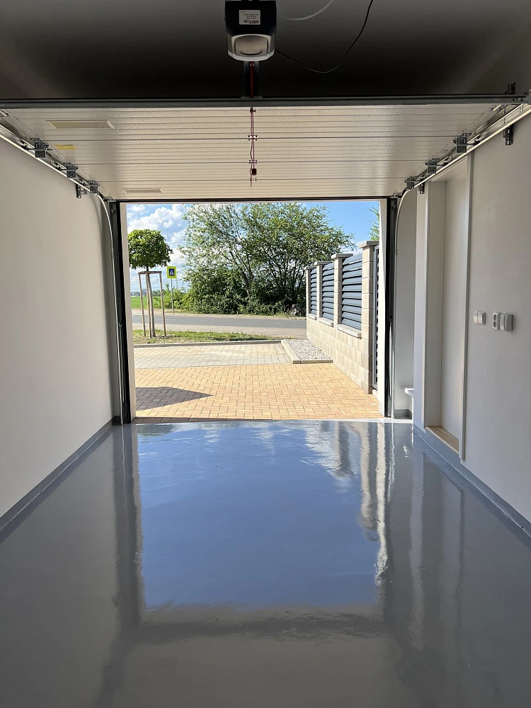 • Garáž se soukromým vjezdem, třífázovou zásuvkou (vhodná pro rychlonabíječku elektromobilu) a kohoutkem na vodu (ideální pro mytí auta, zahradní techniku apod.)