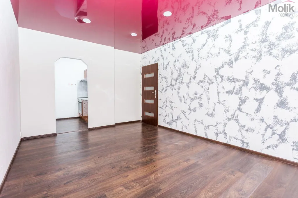 Byt prošel kompletní rekonstrukcí rozšíření koupelny, oddělení kuchyně od obývacího pokoje, nové rozvody vody, napínané fóliové stropy a nové podlahy.