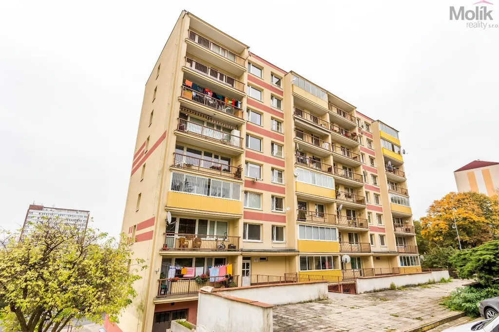 Jednotka se nachází v 7. patře (8. NP). K bytu náleží komora na chodbě a sklepní kóje.