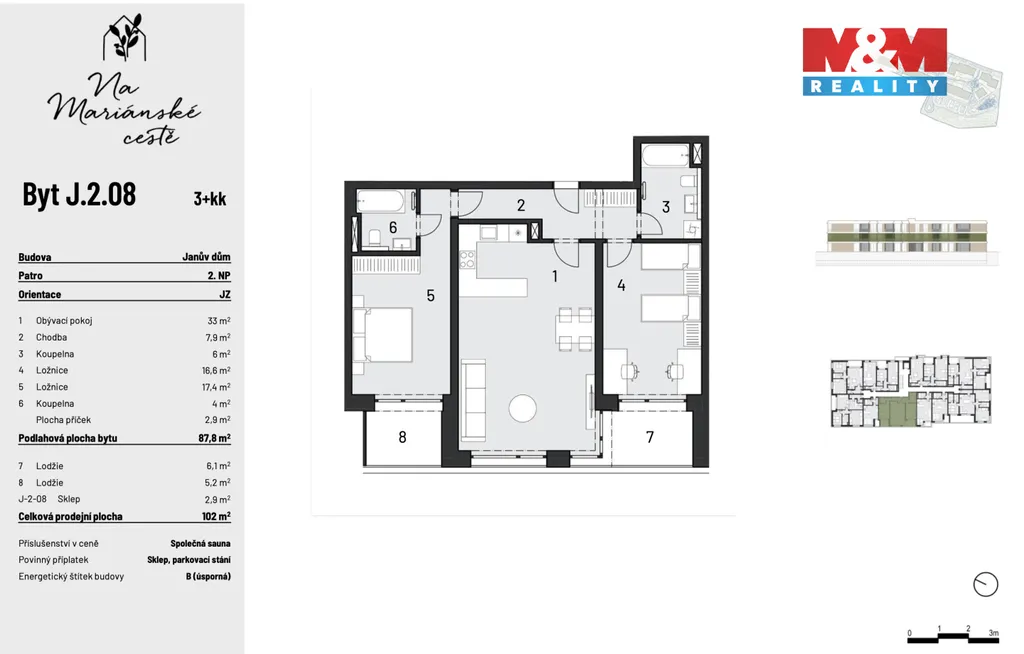 Do konce února máte jedinečnou šanci dostat k bytu GARÁŽOVÉ STÁNÍ ZDARMA!! Tento byt je poslední jihozápadně orientovaný, který nabízí 2 slunné lodžie a 2 koupelny. Je ihned k nastěhování a nachází se v nejžádanější Rezidenci Na Mariánské cestě inspirovaná skandinávským stylem. Ideálním místem pro rodiny s dětmi, páry, jednotlivce i starší generaci, kteří si chtějí užívat klidné a harmonické prostředí. Pečlivě navržené byty poskytují maximální pohodlí, vzdušnost a funkčnost, zatímco okolí rezidence nabízí široké možnosti relaxace i aktivního trávení volného času. K dispozici je workoutové hřiště, komunitní zahrádka i sdílené ohniště, kde můžete trávit příjemné chvíle s rodinou a sousedy. Bezpečné a pohodlné parkování zajistí vnitřní parkovací stání. Rodiny ocení bezpečné prostory pro dětské hry, zatímco ti, kteří hledají klid a pohodu, najdou ideální zázemí pro odpočinek. Komunitní prostředí podporuje přátelská setkání, ať už u odpolední kávy. Rezervujte si svůj vysněný byt!