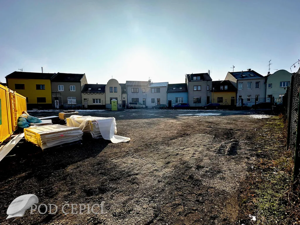 Jak patrno z fotografií, na pozemek lze umístit kontejnery. Současné žluté budou odvezeny. Kontejnery je možné připojit na elektřinu, vodu a kanalizaci (momentálně pomocí dočasných přípojek). Dle územního plánu je parcela částečně v zóně všeobecného bydlení a částečně ve veřejném prostranství.
