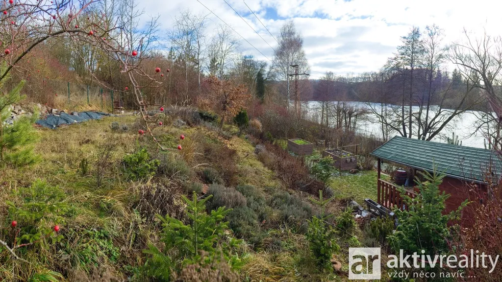 Pozemek je již osázený, nově oplocený, aktuálně využívaný jako zahrada s chatkou na nářadí a dvěma parkovacími místy hned vedle cesty, takže lze ihned začít s rekreací.