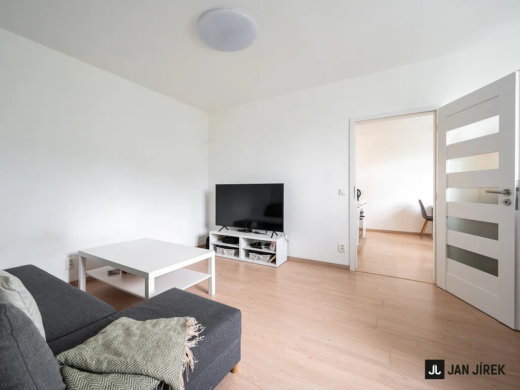 V obývacím pokoji je gauč a televizní stolek, v ložnici manželská postel s matracemi a prostorné vestavěné skříně. Z ložnice je vstup na lodžii. Pokoje jsou průchozí.