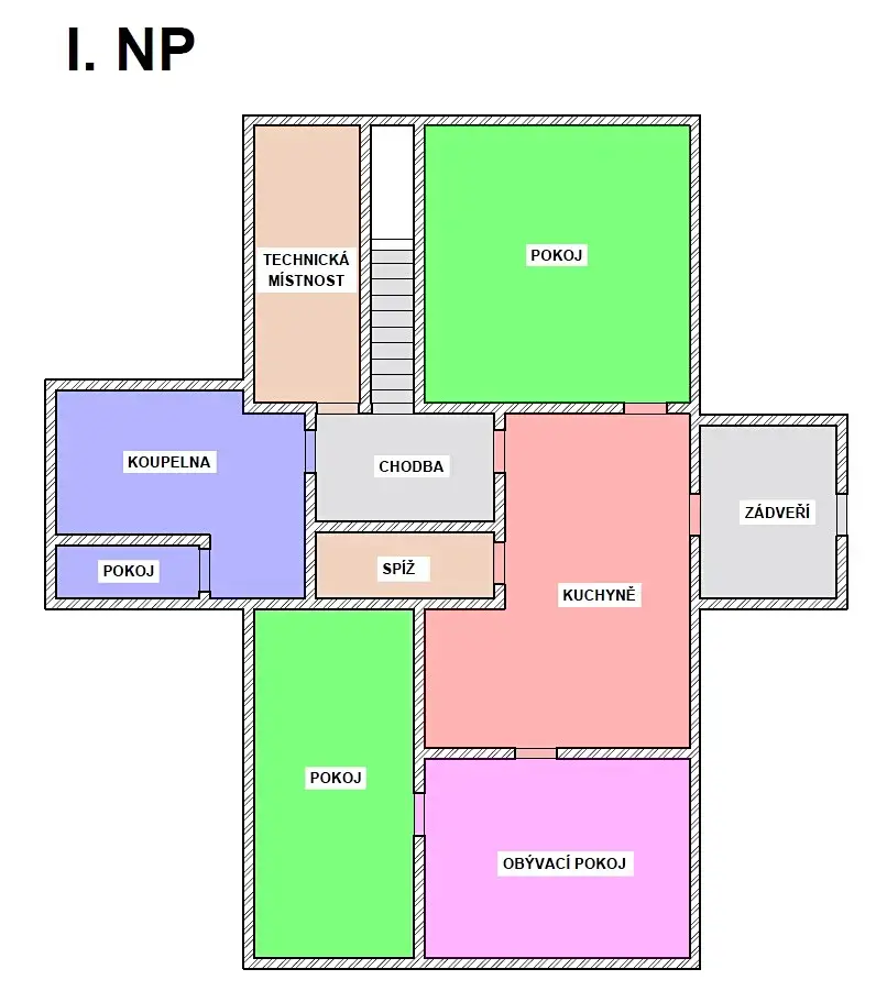 Podlahy v prvním nadzemním podlaží jsou betonové, pokryté buď laminátovou podlahou, nebo dlažbou, a je tak zajištěna variabilita použití nových podlahových krytin. Toto podlaží představuje plně dokončený byt s dispozicí 3+1, který je připraven k okamžitému obývání.