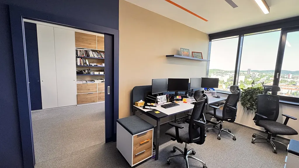 Prostory v budově jsou plně klimatizované, prosvětlené denním světlem a z 20. podlaží se otevírá nádherný výhled na panorama Brna.