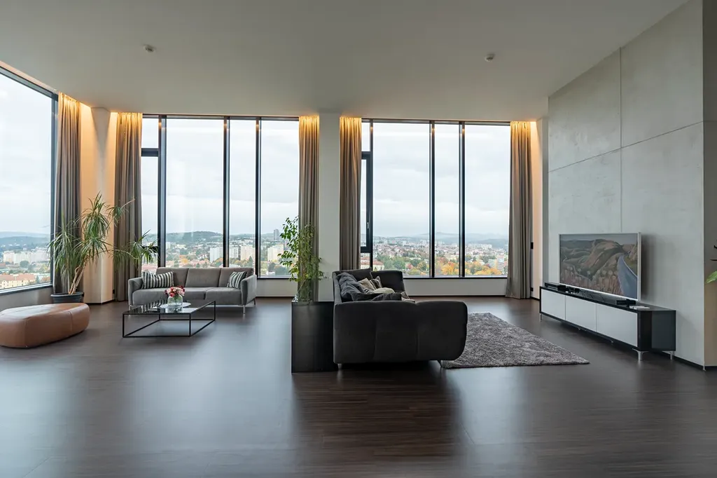 Byt poskytuje naprosté soukromí, klid a nádherný panoramatický výhled na celé Brno. Dispozičně je byt řešen jako 6+kk. Je vybaven vestavěnými skříněmi na míru a moderní kuchyní se spotřebiči značky Miele. Interiér je navržen s důrazem na kvalitu, eleganci a funkčnost.