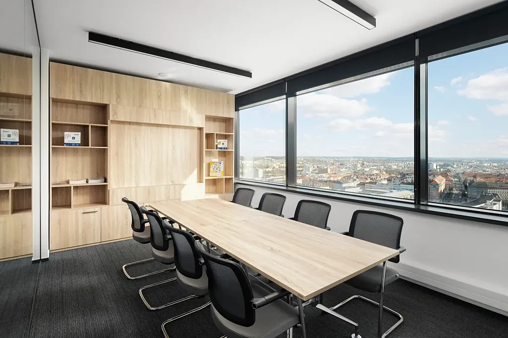 Prostory v budově jsou plně klimatizované, prosvětlené denním světlem a z 9. podlaží se otevírá krásný výhled na Brno.