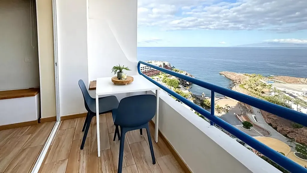 Kompletně zrekonstruovaný a vkusně zařízený apartmán v rezidenčním komplexu Paraíso del Sur se nachází jen pár kroků od oceánu v oblíbené lokalitě Playa Paraíso. Toto světlé studio o celkové ploše 40 m² nabízí dechberoucí panoramatický výhled na Atlantik a ostrov La Gomera, který si můžete vychutnat z prostorné slunné terasy o velikosti 7 m². Ideální místo pro odpočinek, ranní kávu i romantické západy slunce.