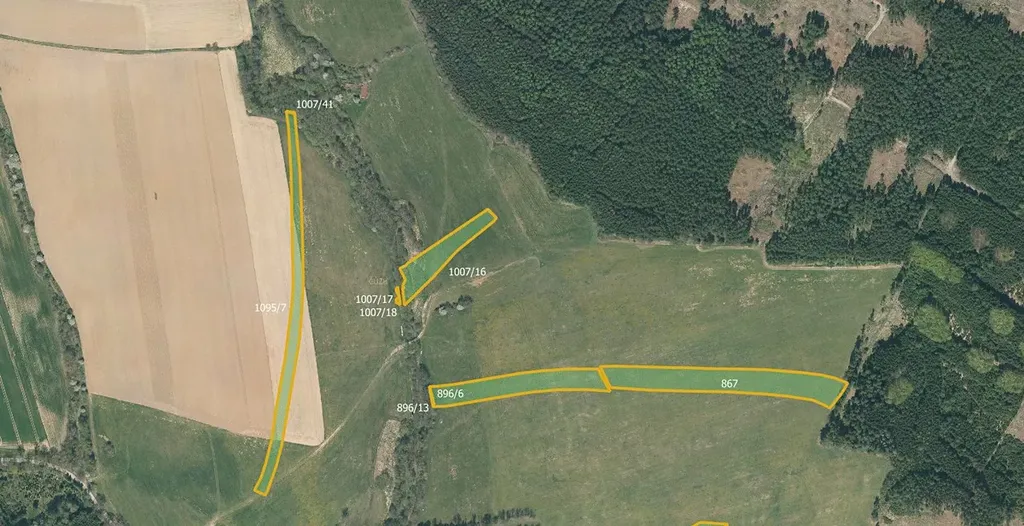 Celková výměra uvedených parcel je 116 361 m2. Vlastník na nich nabízí k prodeji svých 19 394 m2. Z toho orná půda je 11 955 m2, trvalý travní porost 1 016 m2, lesní pozemek 6 421 m2 a vodní plocha 2 m2.