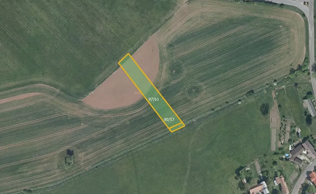 parc. č. 97/61 – trvalý travní porost dle KN, v praxi užíván jako orná půda (2 065 m²)