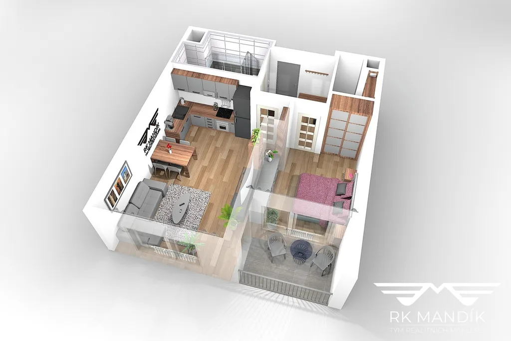 ​Z obývacího pokoje je vstup na praktickou lodžii, která tvoří příjemné místo na posezení.