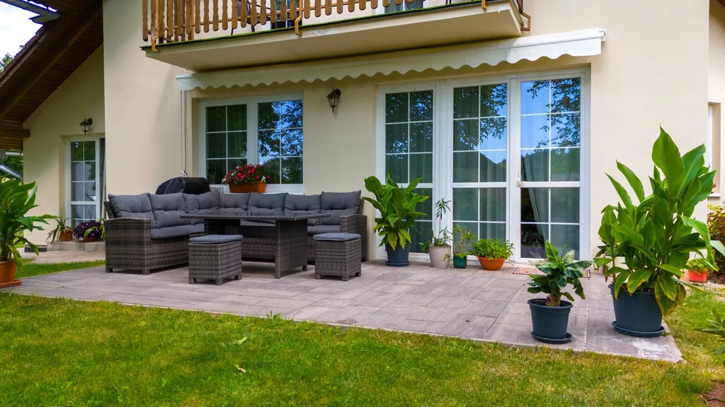 Na domě je markýza nad posezením určeným k odpočinku i letnímu grilování.