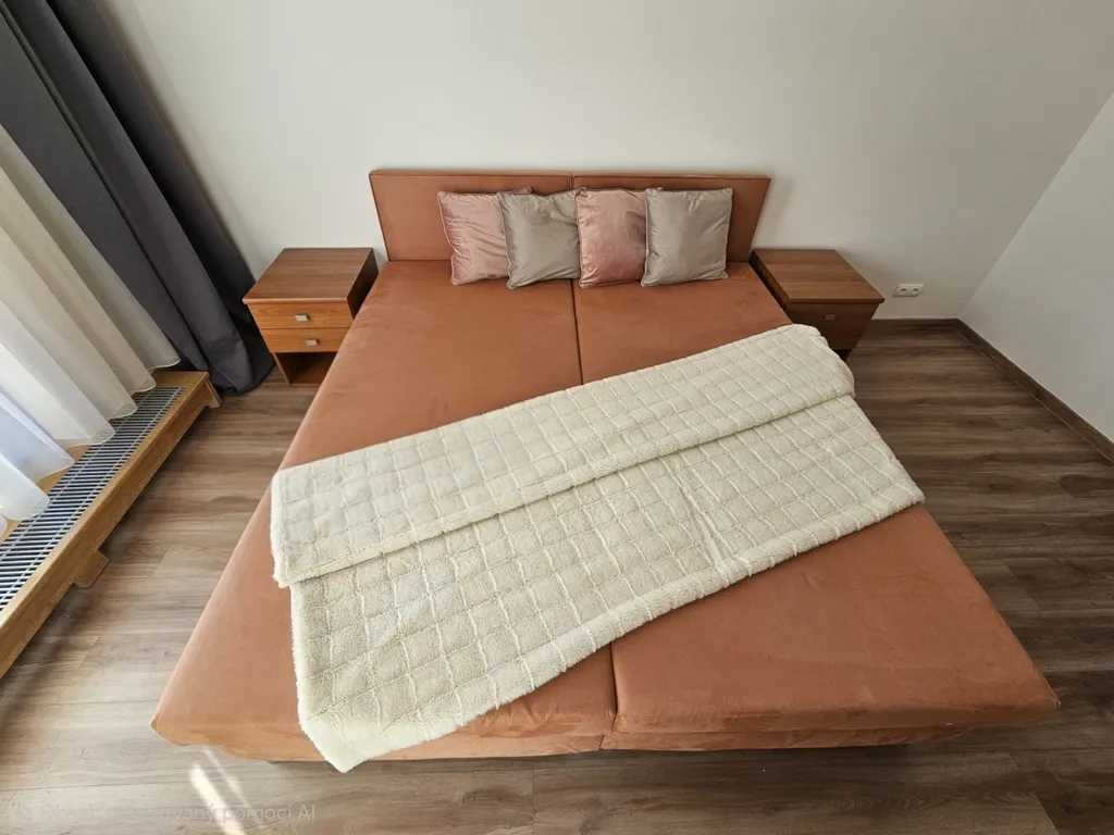 Byt se nabízí zařízený nábytkem viz foto. Kuchyňská linka je vybavena vestavěnými spotřebiči - zánovní indukční varnou deskou, el. troubou, digestoří, lednicí s mrazákem, mikrovlnnou troubou a nádobím. K dispozici je i vysavač, žehlička, žehlící prkno, sušák na prádlo, lůžkoviny apod. Součástí vybavení jsou také bezpečnostní vchodové dveře NEXT a domácí videotelefon. Na podlaze je kvalitní vinyl, solitérní koberec a dlažba. Topení je ÚT. K bytu náleží v 1.PP prostorný sklep 3 m2 a ve stejném podlaží se nachází i garážové stání, které je možné si po dohodě pronajmout. V domě je také k dispozici společná sušárna.