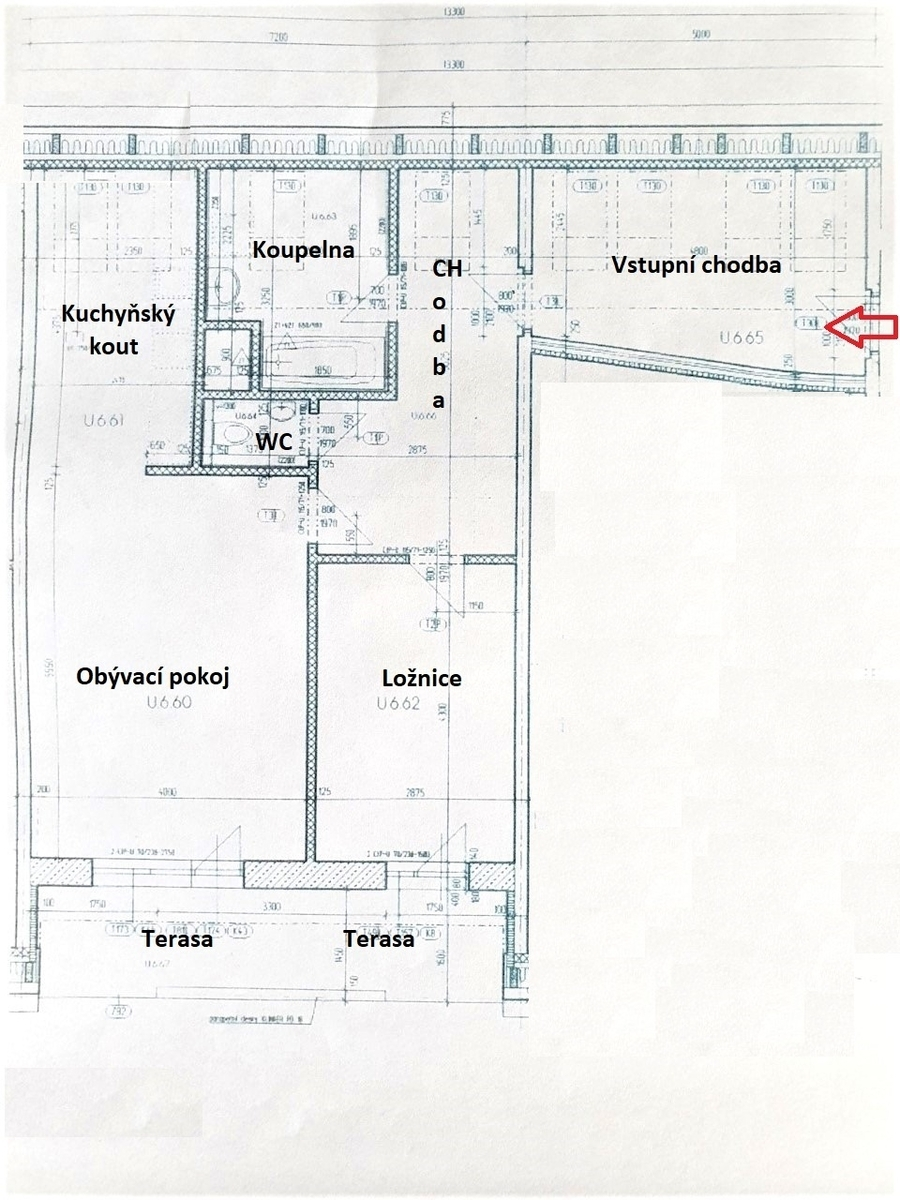 Byt sestává z prostorné vstupní haly, kterou je možné díky 3 střešním oknům využívat např. i jako pracovnu, vnitřní chodby prosvětlené denním světlem, ze které se pak vstupuje do ostatních částí bytu: obývacího pokoje s kuchyní, neprůchozí ložnice, prostorné koupelny se střešním oknem a na WC. Přístup na terasu je z obou pokojů. Byt je po právě dokončené renovaci a je i nově vymalovaný.