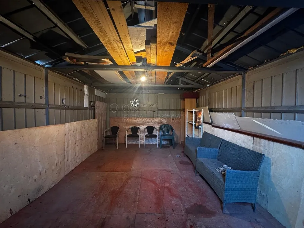 Součástí pozemku jsou rovněž doplňkové stavby – menší dřevěná chata (cca 4 × 4 m), plechová garáž cca 20m2 a navazující dřevěná dřevěná dílna cca 15m2 s rozvaděčem a jističi, vše plně funkční a napojené na elektřinu.