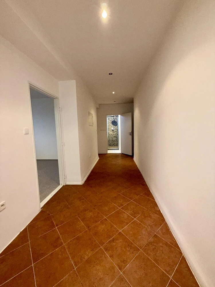 Na chodbě, v kuchyni, koupelně a komoře je dlažba, v pokojích jsou parkety, ve dvou pokojích doplněné kobercem.