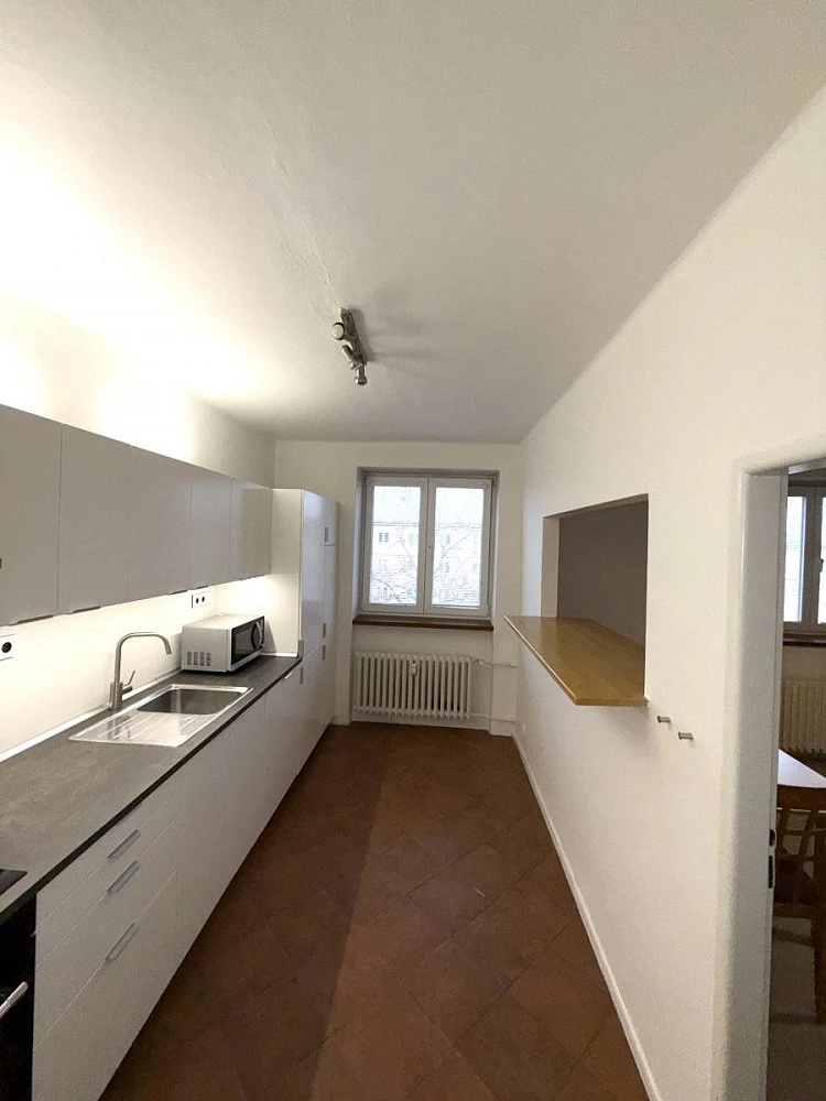 Byt má praktickou dispozici z kuchyně je vstup do obývacího pokoje přes dveře, kuchyně je zároveň propojena s obývacím pokojem servírovacím oknem. V kuchyni je vestavěná myčka nádobí, lednice s mrazákem, indukční varná deska, mikrovlnná trouby, digestoř. Dva další pokoje jsou samostatné. Součástí bytu je také komora s dostatkem úložného prostoru a přípojkou na pračku a sušičku.